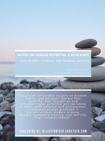 At Notes on Human Potential & Resilience, bridge the gap from theory to practice and learn hard-won uncomfortable truths and transformative actionable insights on mindset and habits that were learned, practiced, and leveraged with 1000s of adults and the next generation to unlock high potential and resilience in our shifting and uncertain world.